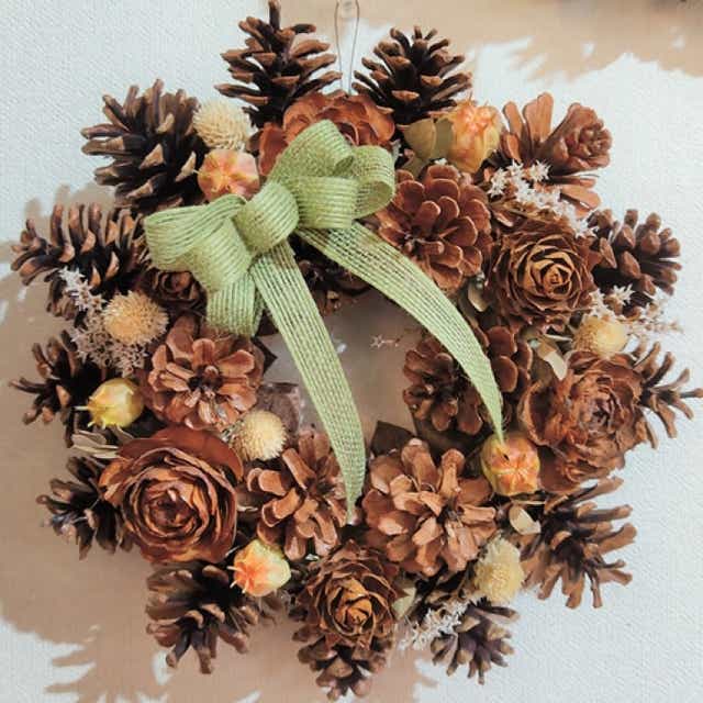 松ぼっくり ドライフラワーで かわいいリースの作り方